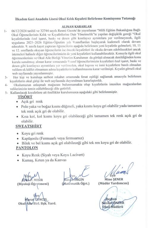 Okul Öğrenci Kıyafeti İle İlgili Duyuru